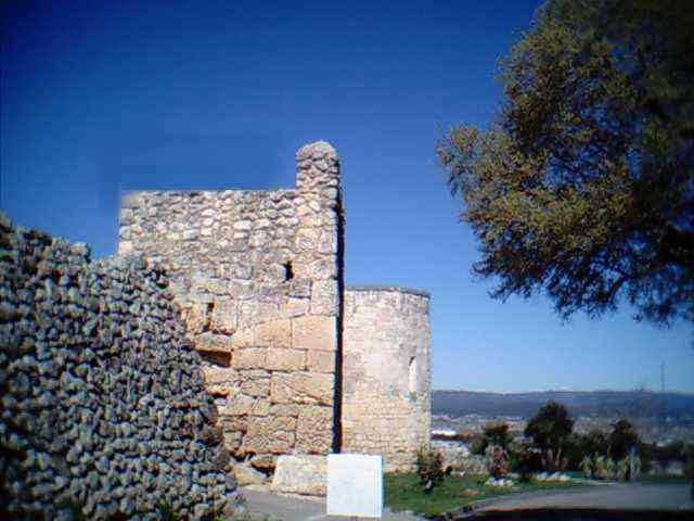 X es el número de elementos defensivos de la torre de entrada a las ruinas y que en la fotografía han sido trucados.