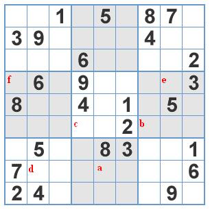 Each row, column and 3x3 box must contain the digits 1 through 9 exactly once.