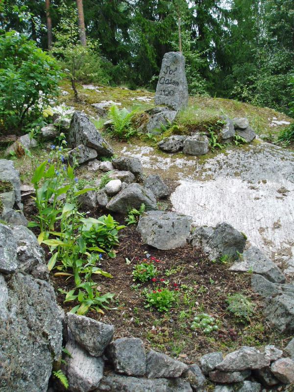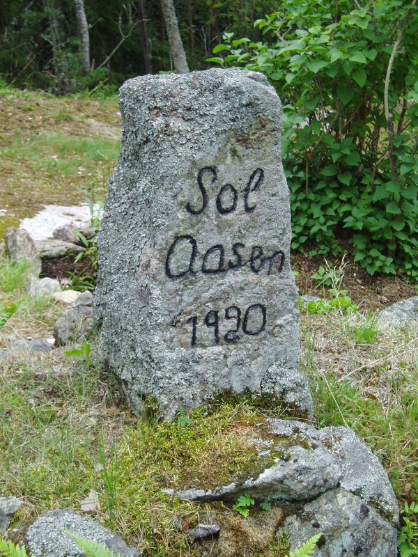 Rett vest for stien over Skullerudåsen, øst for Småmyr, står det en gravstøttelignende stein med innskriften «Sol Aasen 1920». Dette er ingen gravplass, men derimot et utfluktssted flittig brukt av to Oslo-damer. Østmarkvennen Kjell Staxrud forteller om damene og Solåsen, som de kalte sitt paradis: «Tidlig på 1900-tallet var det to damer som hver søndag morgen i sommerhalvåret tok Enebakkbussen og gikk av i Skullerudkrysset presis klokken 09. Herfra vandret de inn i skauen til de kom til denne plassen som de elsket. Når hesten som dro med tømmer til Skullerud gård vendte tilbake til skogen, fikk de kjørekaren til å ta med en sekk matjord fra gården i ny og ne. De plantet pinseliljer og løkblomster og hadde sin egen lille blomsterhage i deres skogsparadis her på Skullerudåsen. «Kjøleskap» laget de mellom to steiner. Kvist og ved samlet de i vedstabelen til kaffebålet. Stedet kalte de «Solaasen» og en av dem hugget navnet og årstallet inn i en stor stein som har stått der til den dag i dag. Hva de to damene het har jeg aldri fått høre. De foretok disse søndagsutfluktene helt til slutten av 50-årene. To Østmarkentusiaster har nå (april 2005) restaurert plassen, fylt ny jord i de gamle damenes blomsterbedd og rustet opp disse. Stedet er også utstyrt med en gjestebok i en tett boks som turfolk oppfordres til å skrive en hilsen i.
