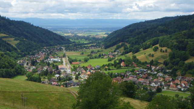 Wenn man weiter fährt, kommt man aus dem Wald heraus an eine Stelle, von der aus man einen wunderbaren Blick auf das Münstertal hat. Unter anderem kann man dabei deutlich das Kloster St. Trudpert in der Ferne sehen, das von dem irisch-schottischen Missionar Trudpert um 640 gegründet wurde.