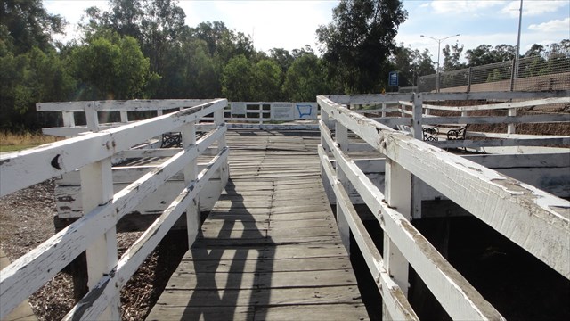 A steamer wharf was constructed, and it is that on which you now stand. The river once ran past here, up the back of the offices which now harbour Joseph's memorial and on this side of the large gum tree which sits between the rose garden and the pond. It proceeded through the war memorial and continued on it's way. The wharf is now a popular spot for wedding photos, and not much else.