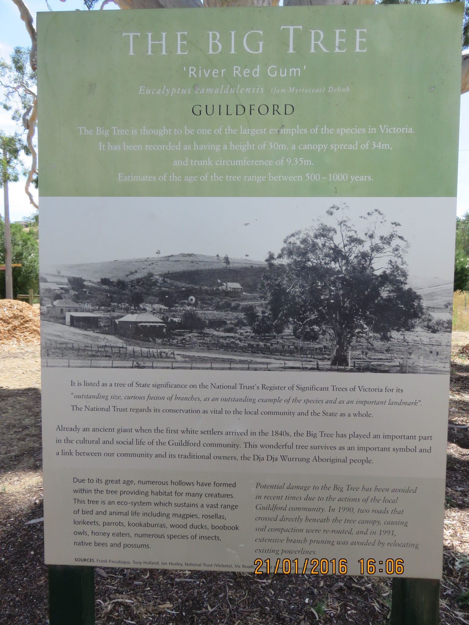 In March 2024, one of the larger boughs on the tree fell, causing significant damage to this beautiful tree. As a result, the tree was barricaded off for quite some time. The area has been significantly improved since then. While the original information board has been removed, the photo of it below should give you the information you need. The writing on the sign is small, but you can click on the image to enlarge it! The cache can be found only a short distance away.