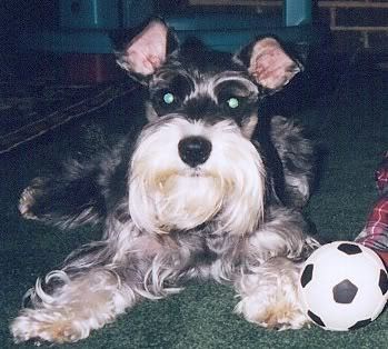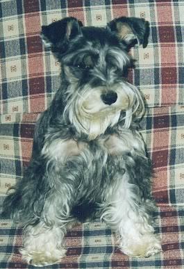 This cache is dedicated to our best friend....Molly. We got Molly as a puppy in May 1993. She was a black and silver miniature schnauzer. Molly was very playful and loved to bark and go for rides in the car! Although she was only 16lbs, she had such a fierce bark that caught everyone off guard. While driving through the country she would always get excited when we said cows! She would run back and forth in the car until she spotted them grazing in the fields and she would bark until they got out of her sight. We refer to Molly as our first born, and truly one of man's best friends! We even took little Molly on our honeymoon! When the boys came along, Molly was older and not as "wild" so our boys became very close to her too.