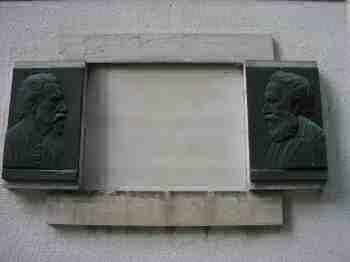 Pametni deska Dr.Miroslavu Tyrsovi a Janu Nerudovi byla na restauracni budove na Rezku odhalena 28. rijna 1934.