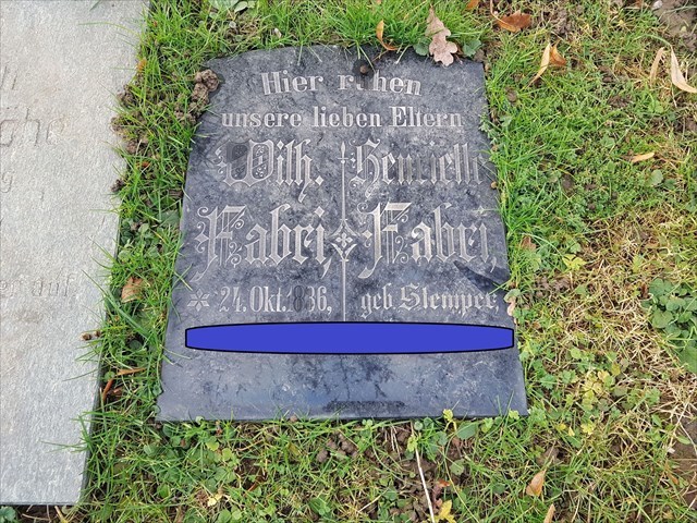 In der Nähe des Denkmals findet ihr alte Grabsteine. Sucht Henriette Fabri.