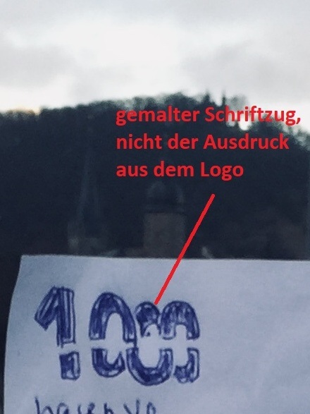 der Schriftzug "1000" mit eurem Namen/Stempel sollte etwa ein Drittel des Bildes einnehmen