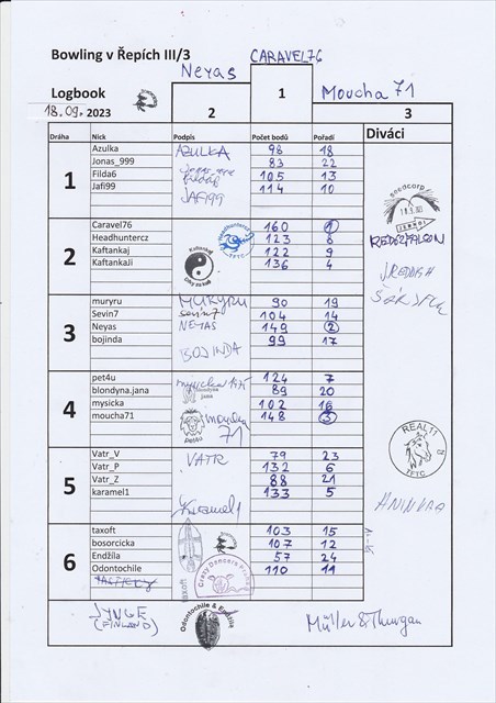 Bowling v Repich III/2, TB vyhral KaftankaJi (180 bodu, draha 2)