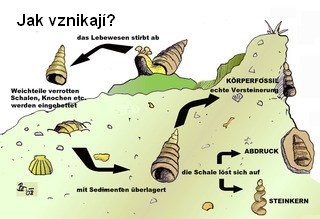 1) Popište vlastními slovy, jak fosilie vznikají.