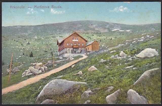 Martinova bouda, jedna z nejstarších v Krkonoších, byla založena kolem roku 1642 lidmi, kteří prchali před nebezpečím třicetileté války. Obnovena byla jako hospodářská bouda k provozování budního hospodářství roku 1795 Martinem Erlebachem z Krausových bud. V okolí dnešní Martinovy boudy (dříve Nová Martinova bouda) stály další 2 boudy, Stará Martinova bouda a východně od nich Rennerova, nebo také Wanzerlova bouda. Od roku 1849 v Martinově boudě hospodařil Václav Lauer a po jeho smrti v roce 1879 ji převzal jeho syn Johan. Ten Novou Martinovu boudu v roce 1879 přestavěl na skromný ubytovací hostinec. V roce 1900 ho postihlo neštěstí, když mu ve vánici na hřebenech umrzli jeho dva synové ( 10 a 14 let). Dvě zbývající menší boudy nechala v roce 1901 vrchnost zbourat, aby se omezila pastva dobytka a pastviny mohly být znovu osázeny klečí.