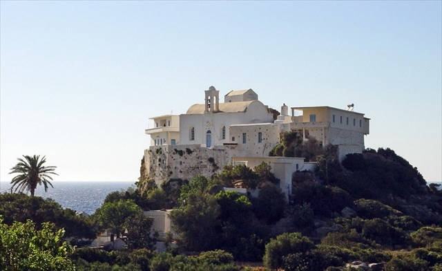 Von Elafonisi fahren wir nach Norden und biegen beim Wegepunkt B zum Frauenkloster Chrysoskalitissa ab. Derzeit leben hier nur noch eine Nonne und ein Mönch. Nicht ungewöhnlich, dass ein Mönch in einem Nonnenkloster lebt, um die Nonnen mit Messfeiern zu versorgen. Der Name „Chrysoskalitissa“ bedeutet „Goldenes Treppchen“, da nach einer Legende die Klostertreppe eine Stufe aus purem Gold hat, die allerdings nur derjenige sehen kann, der ohne Sünde ist. Ich habe sie leider nicht sehen können.