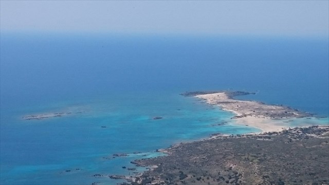 Με πλοίο θα ήταν μόνο 9 ναυτικά μίλια ή 15 χλμ. από την Παλαιόχωρα ως την πανέμορφη χερσόνησο Ελαφονήσι (Σημείο Διδαδρομής Α). Το καλοκαίρι είναι ένα ωραίο ταξίδι με βάρκα κατά μήκος των βράχων της ακτής. Αλλά προτιμούμε να πάμε εκεί με αυτοκίνητο, γιατί θέλουμε να συνεχίσουμε με το αυτοκίνητο μετά. Ανάλογα με το πόσο ξεπλένεται η άμμος, το Ελαφονήσι είναι μερικές φορές μια χερσόνησος και μερικές φορές ένα νησί που χωρίζεται από έναν ρηχό κολπίσκο. Στη σεζόν υπάρχει πολύς κόσμος με αρκετή φασαρία. Εάν περπατήσετε πέρα από το νησί, μπορείτε να το αφήσετε πίσω. Ωστόσο, μεταξύ Νοεμβρίου και Απριλίου, αυτό είναι πιο αγνό ειδυλλιακό χωρίς ξαπλώστρες και ομπρέλες..