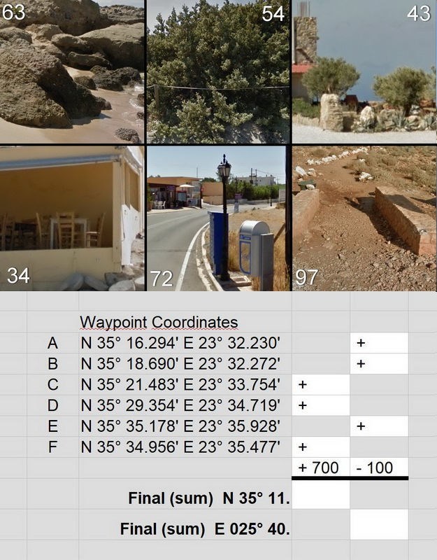 Ρίξτε μια εικονική ματιά στα έξι Σημεία Διαδρομής που προαναφέρθηκαν και θα μπορείτε εύκολα να εντοπίσετε τις έξι εικόνες που τις βλέπετε στην αγγλική λίστα παραπάνω ή στην γκαλερί εικόνων. Εκεί θα βρείτε επίσης το υπολογιστικό φύλλο που θα σας οδηγήσει στις συντεταγμένες του φινάλε.