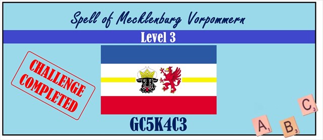 Die Buchstabierweise hat sich auch hier nicht geändert. Nur müsst Ihr unser schönes Bundesland nun dreimal buchstabieren. Das erste Mal mit Multis, von denen aber keiner bereits in Level 2 verwendet wurde. Die zweite Buchstabierrunde müsst Ihr mit Unknowns (Mysteries) absolvieren, die natürlich auch noch nicht verwendet wurden. Wichtig ist, dass alle Caches auch aus MV kommen müssen, ist ja klar oder?