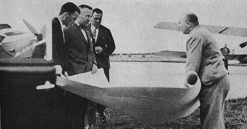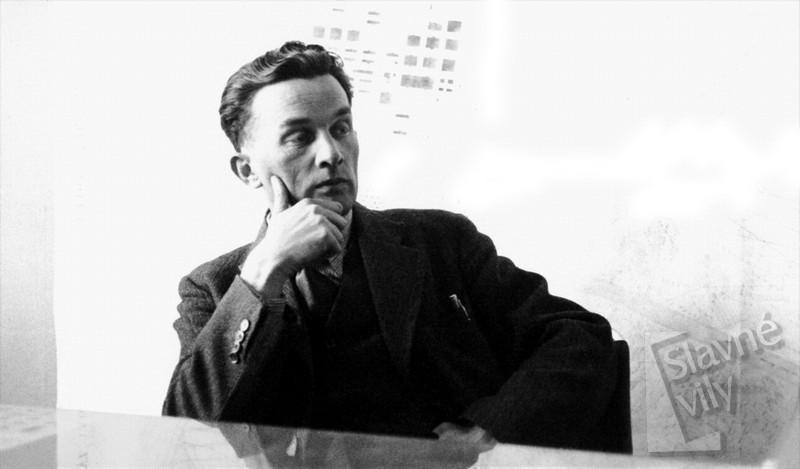 Fotografie z počátků výstavby Otrokovic. Na snímku je projektant architekt František Gahura (vpravo) v rozhovoru s vedoucím výstavby Josefem Hlavničkou, starostou Zlína Dominikem Čiperou a vedoucím letiště Anderlem nad plánem příštího města.