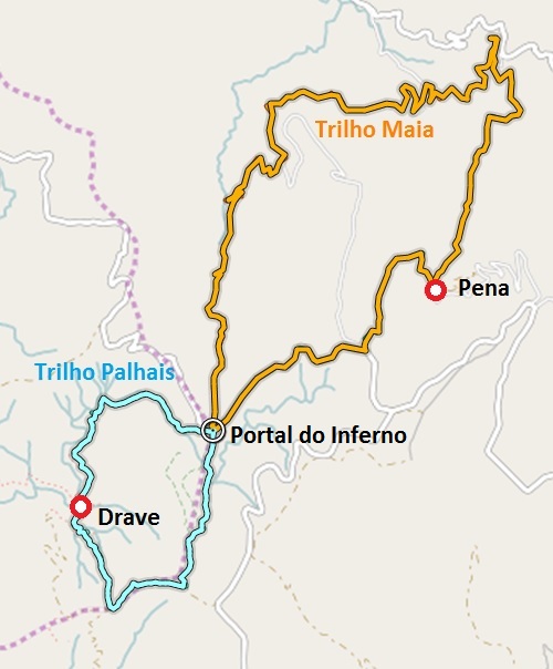 - Tem início no Portal do Inferno às 11h30 (ver waypoint), logo que cheguem os participantes do percurso Difícil. O grupo formado seguirá para a Drave pelo Trilho Palhais.