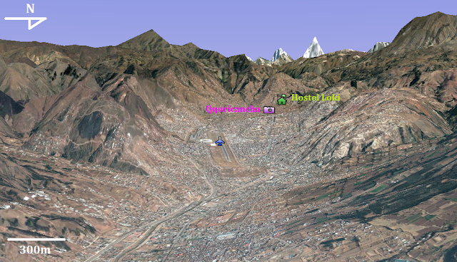 En la figura siguiente, tomada de Google Earth (3x exageración), se muestra la ubicación de la ciudad de Cusco en un terreno ligeramente menos pronunciada, rodeado de un muy accidentado. Esto demuestra la peculiaridad de aterrizaje en el aeropuerto de la ciudad, en la mayoría de los aeropuertos del mundo, los aviones bajan gradualmente en Cusco no es así debido a las altas montañas alrededor, por lo que el número de informes de Internet afirman: "aterrizar en Cusco se trata de una experiencia única ".