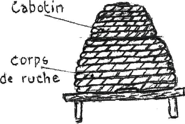 A cette époque, les ruches était constituées en paille de seigle, comportant le corps de ruche surmonté d'une hausse appelé "cabotin" dans laquelle les abeilles construisaient leurs rayons.