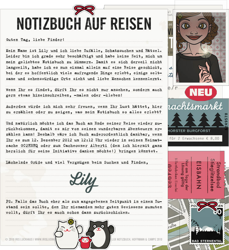 Lilys Notizbuch hat es tatsächlich geschafft pünktlich am 12.12.12 zurück in ihrem Heimatcache zu sein.