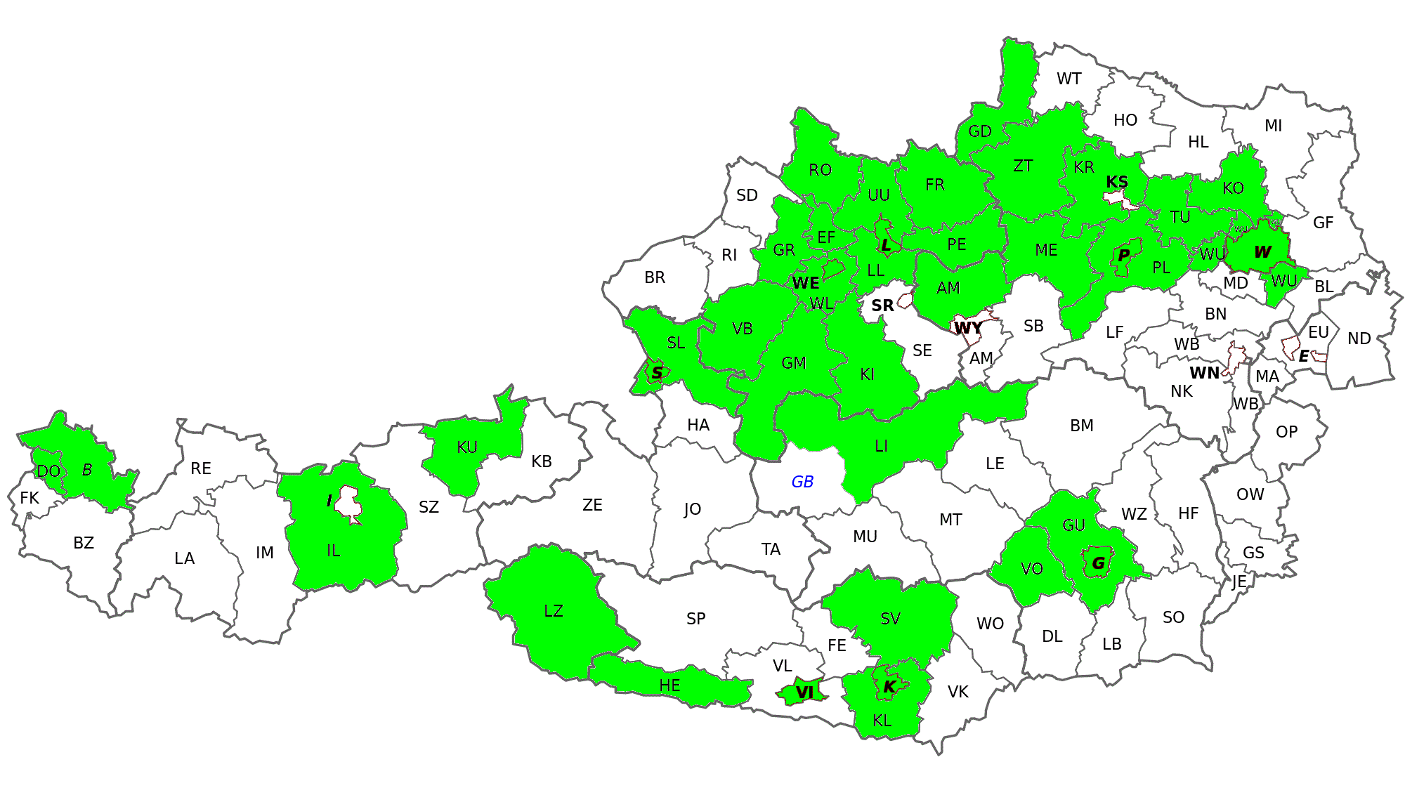 - Visit all Austrian counties (already visited conties are marked on the map below in green colour)