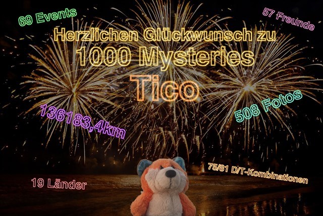 Am 12.12.2021 hat Tico seinen 1000. Mystery Cache gefunden.