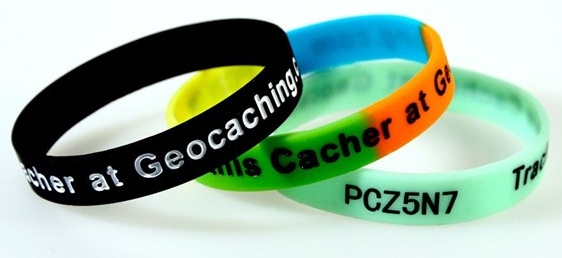 Motto: "Gib dich mit diesem Armband immer und überall als Geocacher zu erkennen. Hab dein Trackable Item immer dabei."