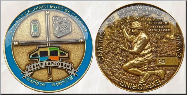 Bald fand er auch Gefallen am Sammeln von Coins. Nun war es nur noch ein kleiner Schritt bis zur Gestaltung seiner ersten eigenen, noch nicht trackbaren Camp Explorer Personal Coin im September 2005.